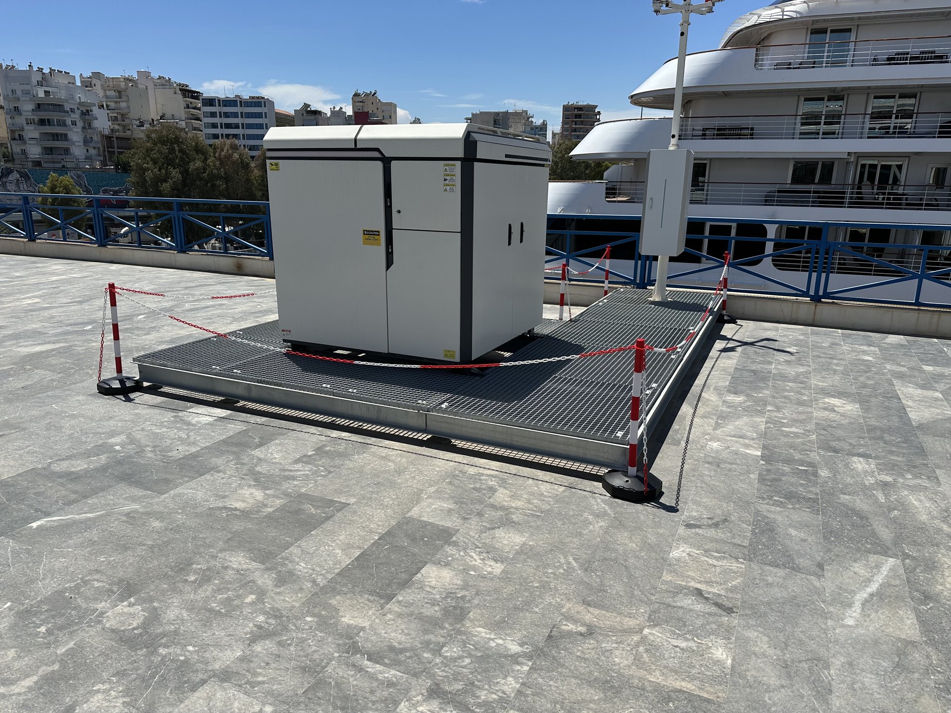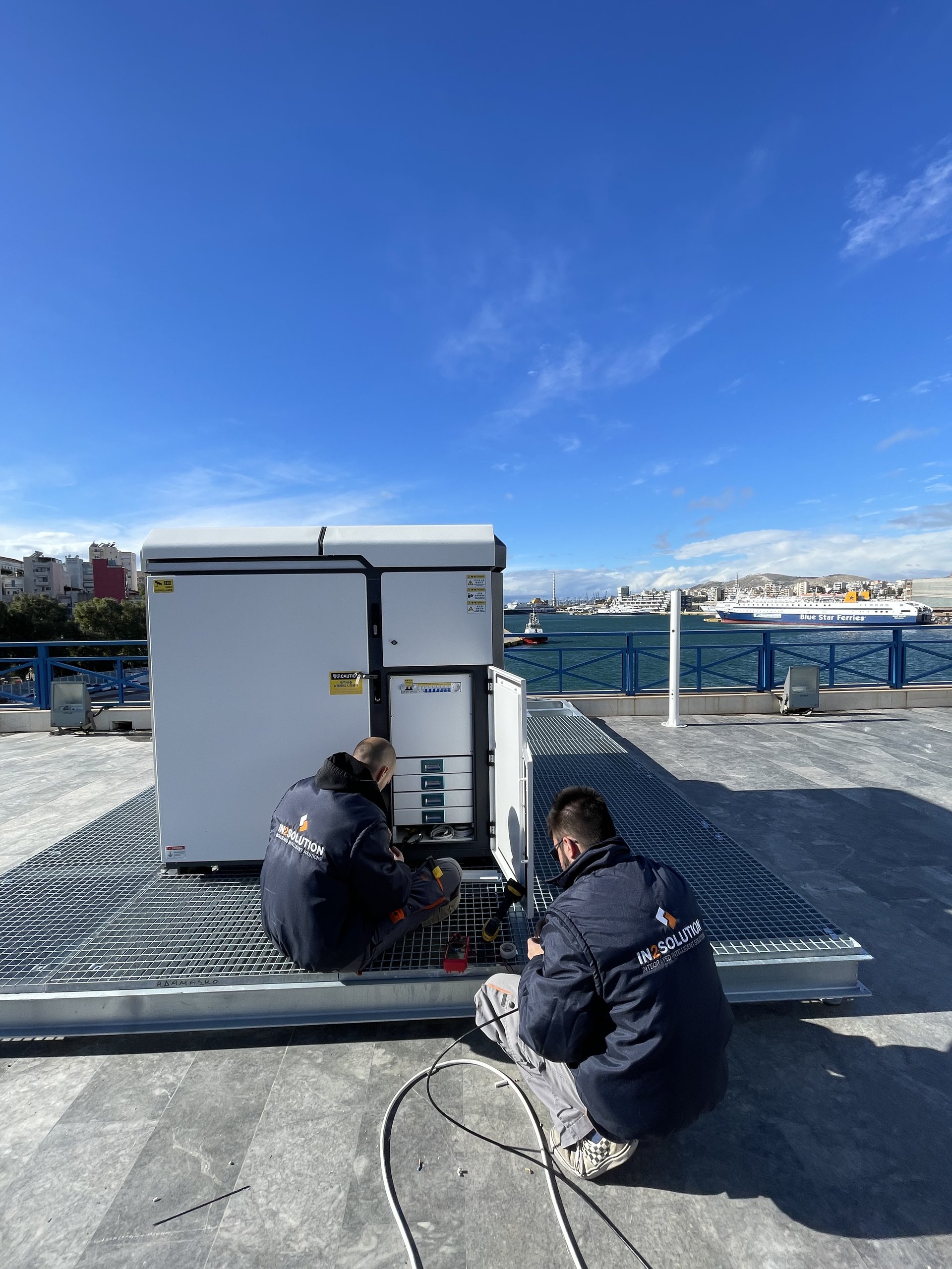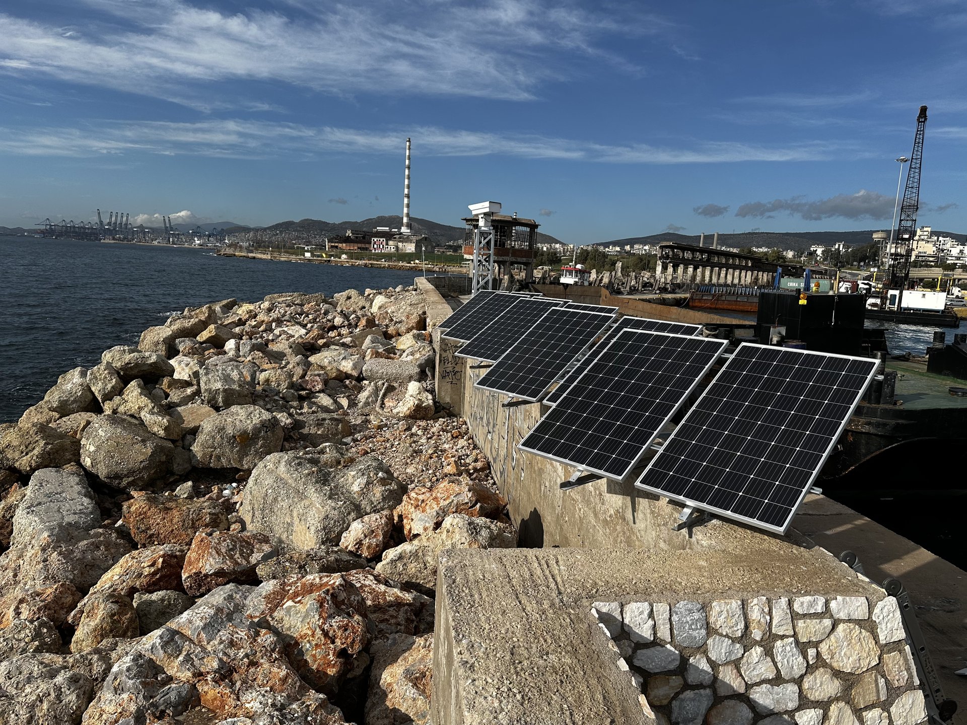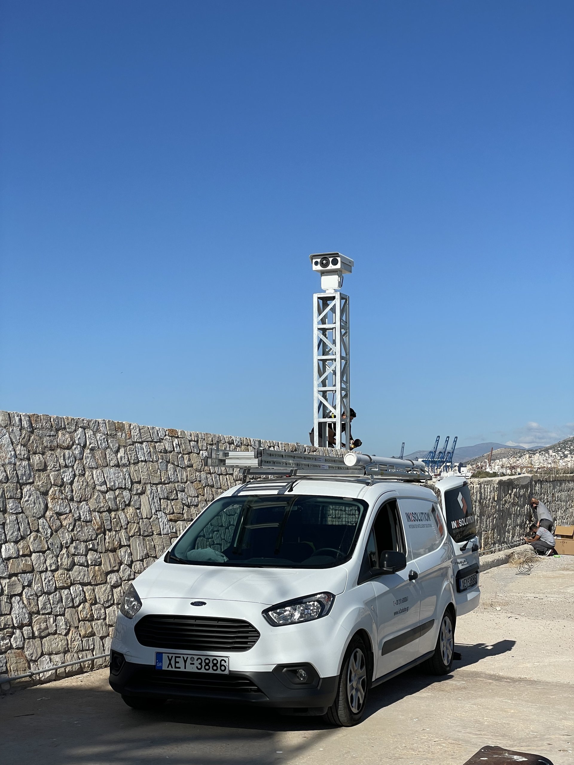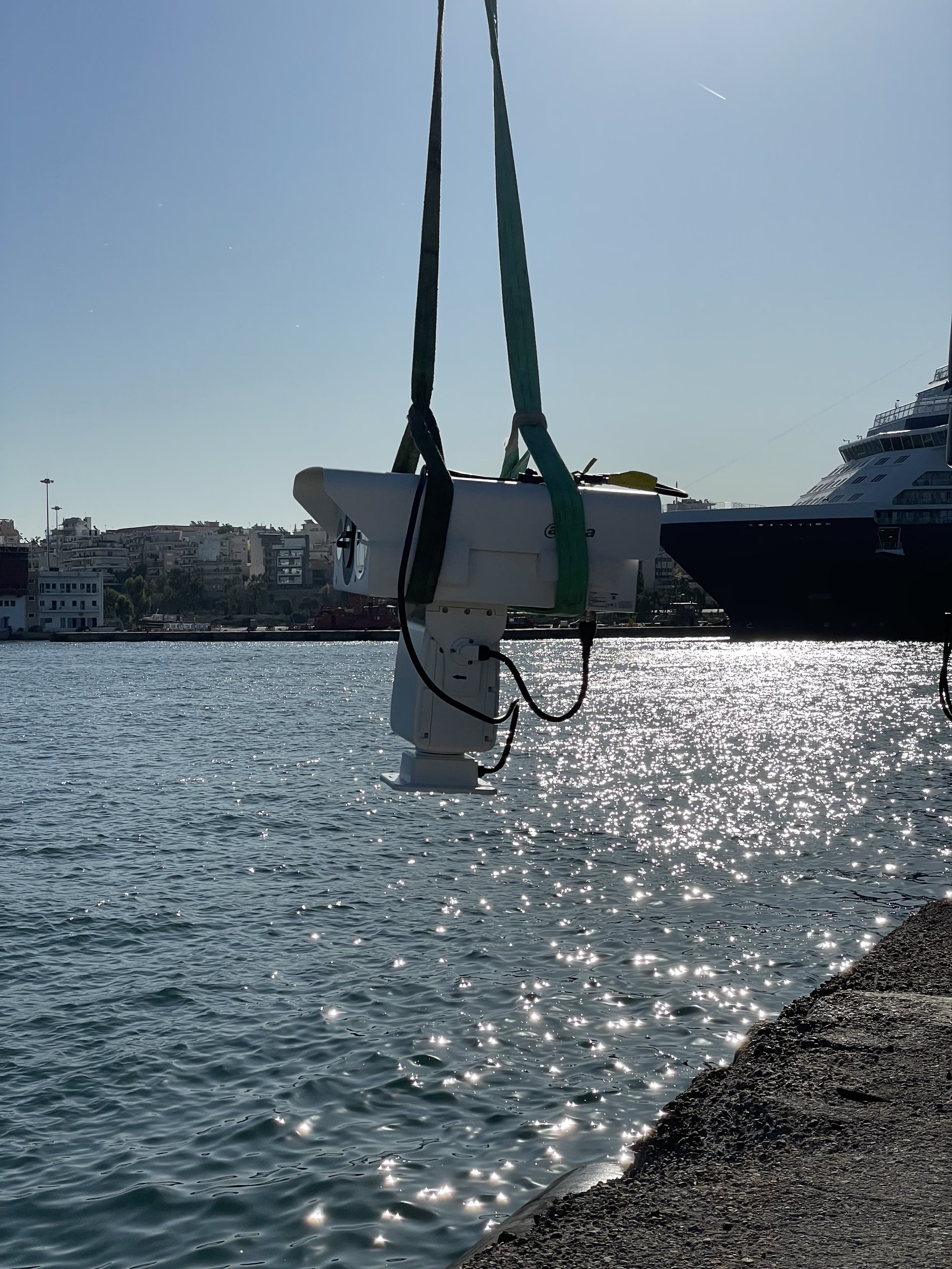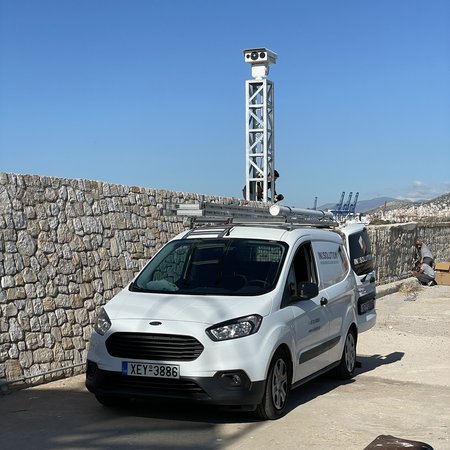 Τοποθέτηση δύο Θερμικών Δικτυακών Αντιδιαβρωτικών Hybrid PTZ καμερών, με αυτόνομη τροφοδοσία (solar) και 5G modem routers, σε ειδικούς μεταλλικούς ιστούς στις δύο πλευρές της κεντρικής εισόδου του λιμένα.